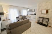 T7: 2. emeleten, nappali konyhasarokkal és kihúzható dupla ággyal, háló dupla ággyal és 1 ággyal, háló 2 ággyal, Z/WC, erkély. |