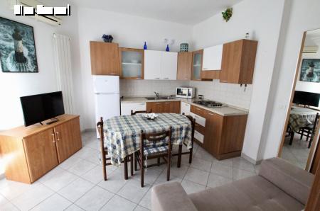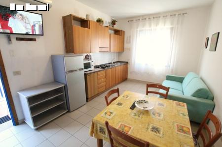 B4 (földszinti): nappali konyhasarokkal, háló dupla ággyal és emeletes ággyal, Z/WC, terasz.
