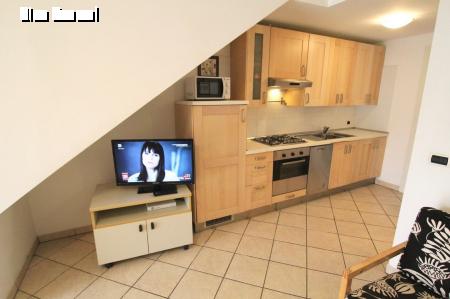 Q6: 2 szinten: földszinten: nappali konyhasarokkal, háló kihúzható dupla ággyal, Z/WC, terasz, kert,